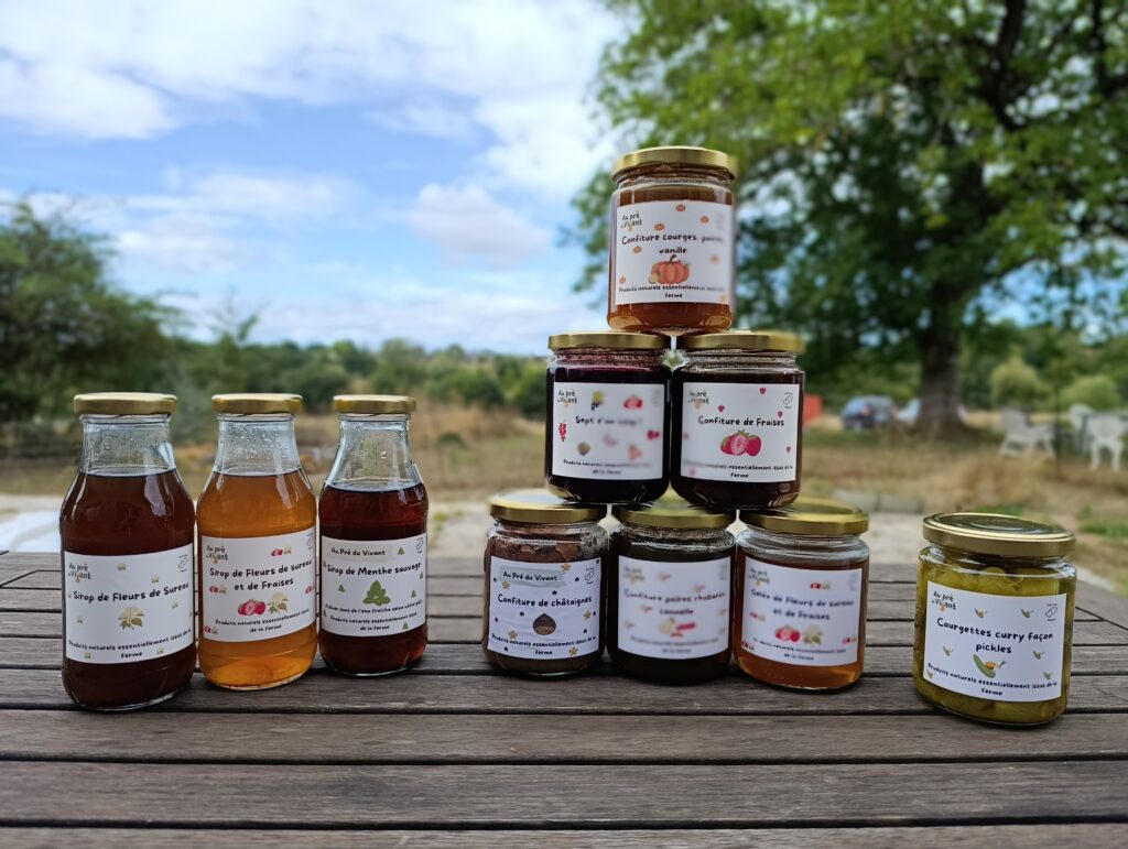 Nous produisons avec passion des confitures et pickles maison en utilisant exclusivement les fruits et légumes de notre ferme ou des environs. Cueillis à pleine maturité, nos produits sont transformés sur place selon des recettes traditionnelles ou originales, sans additif ni conservateur. Chaque pot reflète le goût authentique du terroir et le savoir-faire artisanal que nous mettons au cœur de notre démarche.